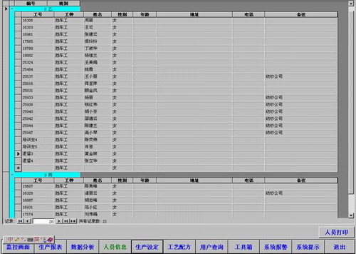 3.人員信息部分:記錄生產人員信息以供報表統計界面如下: