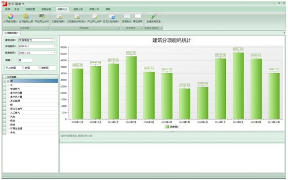 統(tǒng)計(jì)建筑或片區(qū)能耗的時(shí)用量、日用量和年用量,以曲線圖、柱狀圖等不同方式顯示,支持報(bào)表輸出。