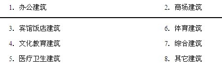 Acrel-5000建筑能耗分析管理系統(tǒng)的數(shù)據(jù)庫(kù)建立也完全依據(jù)114號(hào)文,根據(jù)建筑的使用功能和用能特點(diǎn),將國(guó)家機(jī)關(guān)辦公建筑和大型公共建筑分為如下8類(lèi):