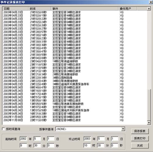 操作記錄按一定格式把操作員/ 管理員進行的參數設置、閥門開/ 關等操作都按一定格式記錄在操作記錄中。記 錄時間可由用戶給定,以便提高操作人員的責任心,見圖7 。