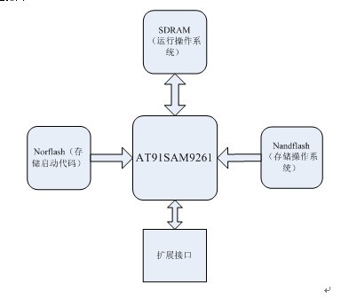 主機(jī)實(shí)質(zhì)上是一個帶有人機(jī)交互界面的嵌入式系統(tǒng)。為了完成嵌入式平臺的構(gòu)建,方便實(shí)現(xiàn)網(wǎng)絡(luò)協(xié)議的通訊,擬采用ARM9+操作系統(tǒng)的方式,考慮到工業(yè)級的工作溫度以及方便帶液晶接口,選擇ATMEL公司的AT91SAM9261作為系統(tǒng)的主控CPU。