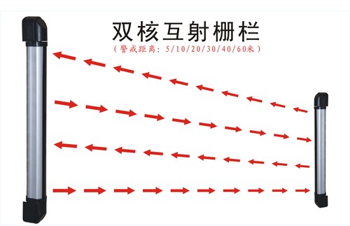 其工作原理如下圖所示:發(fā)射端發(fā)出多束有效寬度為100mm的人視覺不可見 的防衛(wèi)射束構(gòu)成網(wǎng)狀,接收端在收到防衛(wèi)射束時(shí),進(jìn)入防衛(wèi)狀態(tài)。