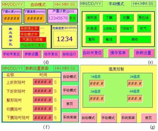 工藝參數設置及相關控制界面等分別如圖4(a)、(b)、(c)、(d)、(e)、(f)、(g)等所示。
