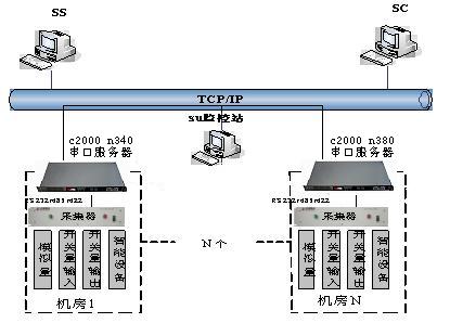 在電信接入網點機房現場,搭建基于TCP/IP的現場通過串口聯網服務器統一監控平臺,分批逐次對動力設備、機房環境、安全保衛消防、等各系統進行集中監控。可以整合各系統的各種設備、串口和協議,就可以通過串口軟件直接進入各接入網點機房實施監控。由于搭建了統一平臺,在一次投資之后,只需逐步添加外接串口設備,就可漸進完成動力設備、機房環境、安全保衛消防、各系統的基于TCP/IP網絡結構的集中監控。