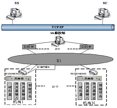 隨著寬帶網絡的發展,在各個接入網點,獲得寬帶網絡資源越來越容易。利用這些寬帶網絡資源,采用TCP/IP方式,接入網點可以很容易地與監控管理中心及數據庫建立起聯系,用較低的成本,對接入網點的動力設備、機房環境、安全保衛消防、視頻圖像等信息實施統一平臺下的監控。