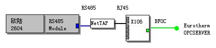6、 歐陸儀表2604采用NETTAP網關將RS485(Modbus RTU)轉換成以太網TCP/IP后接入X106;
