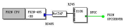 3、 三菱FX2N系列PLC擴展FX2N-485-BD接口模塊,然后采用NETTAP網關將三菱Computer Link轉換成以太網TCP/IP后接入X106;
