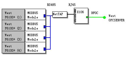 2、 West儀表采用NETTAP網關將Modbus RTU轉換成以太網TCP/IP后接入X106;
