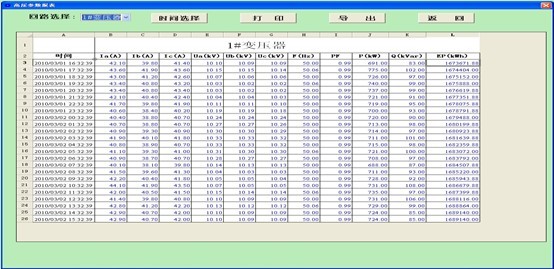 用電量報表功能,根據(jù)時間段可以查詢各回路的用電量情況,見圖4;