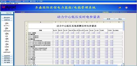 實時電參量:低壓各回路三相電流、電壓、功率、頻率、電能數據等查詢、打印及導出。