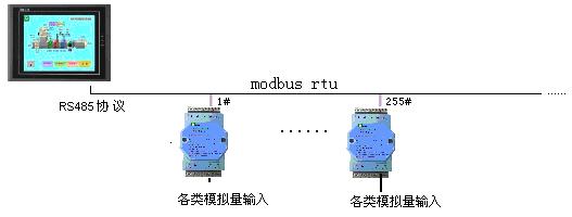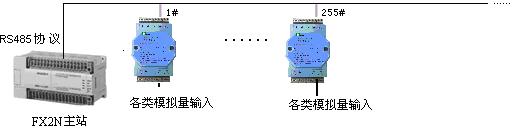 PLC的RS-485和COLM8模塊進行連接,通過標準Modbus/RTU協議,可應用于壓力、溫度、濕度、風速、流量、CO2濃度、PH值等等數據采集。