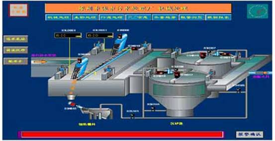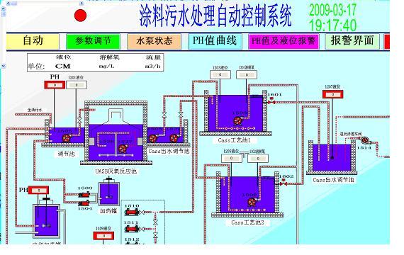 2#攪拌2分為手動(dòng)和自動(dòng)兩種,手動(dòng)時(shí)將電控柜上的旋鈕打到“手動(dòng)”檔上即可手動(dòng)在電控柜上直接啟動(dòng)/停止攪拌機(jī),自動(dòng)時(shí)將電控柜上的旋鈕打到“自動(dòng)”檔上,即可在電腦上操作,電腦上操作時(shí),點(diǎn)擊攪拌機(jī)狀圖案就會(huì)彈出1#攪拌2操作畫(huà)面,可以在電腦上任意啟動(dòng)/停止2#攪拌2。 12. 1#鼓風(fēng)機(jī)啟動(dòng)停止方法: 1#鼓風(fēng)機(jī)分為手動(dòng)和自動(dòng)兩種,手動(dòng)時(shí)將電控柜上的旋鈕打到“手動(dòng)”檔上即可手動(dòng)在電控柜上直接啟動(dòng)/停止泵,自動(dòng)時(shí)將電控柜上的旋鈕打到“自動(dòng)”檔上,即可在電腦上操作,電腦上操作時(shí),點(diǎn)擊泵狀圖案就會(huì)彈出1#鼓風(fēng)機(jī)操作畫(huà)面,可以在電腦上任意啟動(dòng)/停止1#鼓風(fēng)機(jī)。 13. 2#鼓風(fēng)機(jī)啟動(dòng)停止方法: 2#鼓風(fēng)機(jī)分為手動(dòng)和自動(dòng)兩種,手動(dòng)時(shí)將電控柜上的旋鈕打到“手動(dòng)”檔上即可手動(dòng)在電控柜上直接啟動(dòng)/停止泵,自動(dòng)時(shí)將電控柜上的旋鈕打到“自動(dòng)”檔上,即可在電腦上操作,電腦上操作時(shí),點(diǎn)擊泵狀圖案就會(huì)彈出2#鼓風(fēng)機(jī)操作畫(huà)面,可以在電腦上任意啟動(dòng)/停止2#鼓風(fēng)機(jī)。 14. 硫酸電磁閥及硫酸PH設(shè)定: 硫酸電磁閥分為手動(dòng)和自動(dòng)兩種,手動(dòng)時(shí)將電控柜上的旋鈕打到“手動(dòng)’檔上即可手動(dòng)在電控柜上直接啟動(dòng)/停止閥,自動(dòng)時(shí)將電控柜上的旋鈕打到“自動(dòng)”檔上,即可在電腦上操作,電腦上操作時(shí),點(diǎn)擊閥狀圖案就會(huì)彈出硫酸電磁閥操作畫(huà)面,點(diǎn)擊“手動(dòng)”時(shí),可以在電腦上任意開(kāi)/關(guān)硫酸電磁閥,但是注意如果要自動(dòng)運(yùn)行須先看硫酸PH是否為所要求值,剛點(diǎn)擊“硫酸PH設(shè)定”時(shí)彈出的最小值和最大值可能都顯示0,等大約5S后就會(huì)出現(xiàn)先前設(shè)定的值,目前設(shè)定值為5—6,如須修改則點(diǎn)擊“硫酸PH設(shè)定”即可修改,PH設(shè)定之后點(diǎn)擊“自動(dòng)”即可自動(dòng)運(yùn)行 15. 液堿電磁閥及液堿PH設(shè)定: 液堿電磁閥分為手動(dòng)和自動(dòng)兩種,手動(dòng)時(shí)將電控柜上的旋鈕打到“手動(dòng)”檔上即可手動(dòng)在電控柜上直接啟動(dòng)/停止閥,自動(dòng)時(shí)將電控柜上的旋鈕打到“自動(dòng)”檔上,即可在電腦上操作,電腦上操作時(shí),點(diǎn)擊閥狀圖案就會(huì)彈出液堿電磁閥操作畫(huà)面,點(diǎn)擊“手動(dòng)”時(shí),可以在電腦上任意開(kāi)/關(guān)硫酸電磁閥,但是注意如果要自動(dòng)運(yùn)行須先看液堿PH是否為所要求值,剛點(diǎn)擊“液堿PH設(shè)定”時(shí)彈出的最小值和最大值可能都顯示0,等大約5S后就會(huì)出現(xiàn)先前設(shè)定的值,目前設(shè)定值為7.5—8.5,如須修改則點(diǎn)擊“液堿PH設(shè)定”即可修改,PH設(shè)定之后點(diǎn)擊“自動(dòng)”即可自動(dòng)運(yùn)行