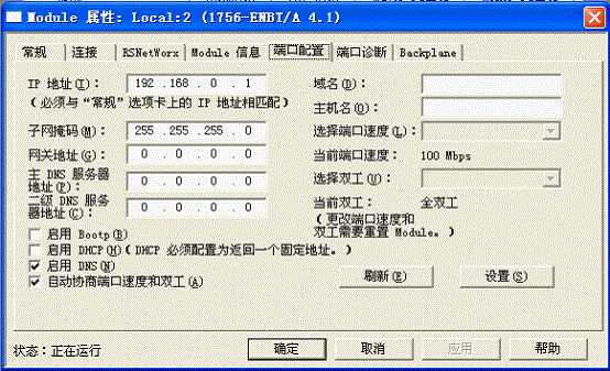 在此查看或配置以太網模塊IP地址、子網掩碼、通迅類型等信息。