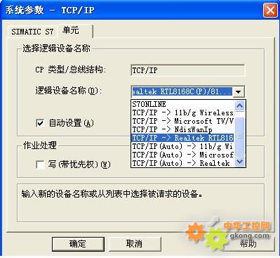 3、鼠標右鍵TCP/IP,選擇“系統參數”,選擇“單元”屬性頁,設置邏輯設備名稱為TCP/IP->(計算機網卡)。