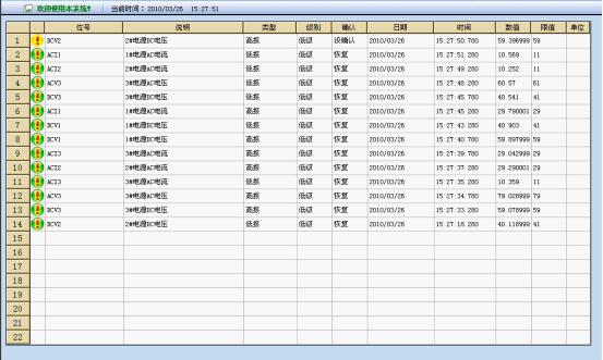 報(bào)警的歷史記錄以表格的形式展現(xiàn),明確標(biāo)注出所查詢報(bào)警的時(shí)間、類型、級(jí)別、是否確認(rèn)等信息,便于查詢以及責(zé)任確認(rèn)。