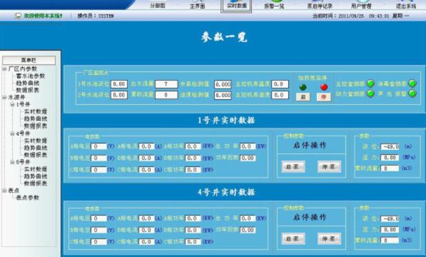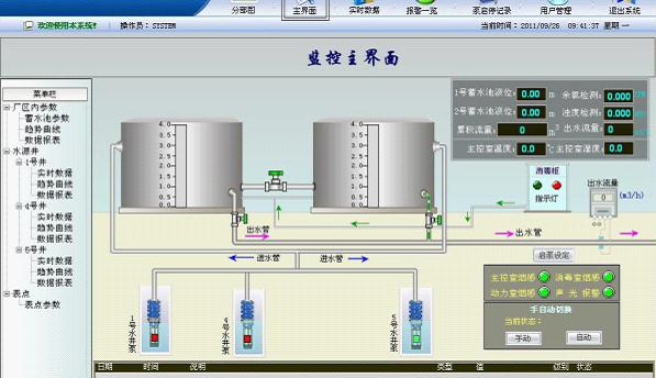 監控系統實現的功能有:1、監測中心按無限套設備設計,通過GPRS無線網絡通信平臺采集信號2、可實現水泵變頻運行的電壓、頻率、電流、故障等信息的集中監控,實時采集遠程設備的數據和狀態;3、顯示屏可動態顯示各加壓泵站當前狀態,遇水泵故障時,可聲光綜合報警,同時給管理人員發信息;4、無人值守時,可自動按設置的手機號碼發送短消息報警;5、可實現數據實時曲線、歷史曲線查詢功能,還可完成歷史數據記錄和歷史故障記錄的查詢;6、按照設備提供的通訊協議開發設備的接入,最小通訊周期為1分鐘。