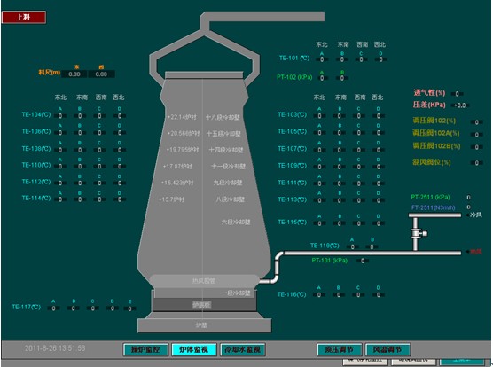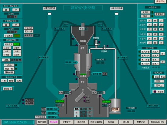 5、工長操爐畫面,通過畫面參數合理調節爐況是高爐順產、高產的關鍵。