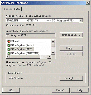 (1)在桌面執(zhí)行菜單命令“開(kāi)始→程序→PRODAVE_S7→PG-PC Interface”,打開(kāi)接口參數(shù)設(shè)置對(duì)話(huà)框。