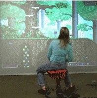 用戶坐在座椅上,通過(guò)轉(zhuǎn)變身體重量來(lái)把座椅向所需的方向移動(dòng)、旋轉(zhuǎn)。座椅的物理移動(dòng)會(huì)被映射到游戲環(huán)境中的視角/方向移動(dòng)。例如:如果用戶向前移動(dòng)身體,帶動(dòng)座椅向前傾斜,則會(huì)在虛擬世界中產(chǎn)生向前運(yùn)動(dòng)的感覺(jué);要想在虛擬環(huán)境中旋轉(zhuǎn)視角,則需要輕微旋轉(zhuǎn)座椅,從而引發(fā)向特定方向的不同速度的視角旋轉(zhuǎn)。