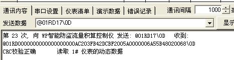客戶選用了上潤的WP流量積算控制儀,他們要獲取這塊儀表的參數,一個是流量、另一個是累積流量。使用上潤公司提供的通訊測試軟件可以把這兩個數據讀過來,如圖1所示。