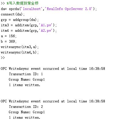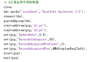 一、利用Matlab命令訪問紫金橋OPC服務器的代碼如下: