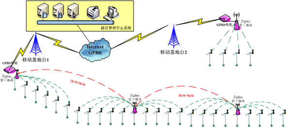 61548; 路燈控制部分:路燈控制器實(shí)現(xiàn)燈具電流電壓等工作狀態(tài)的監(jiān)測和路燈調(diào)光及開關(guān)燈控制。燈具工作狀態(tài)信息和調(diào)整指令通過集成在控制器內(nèi)部的 ZIGBEE 無線模塊進(jìn)行收發(fā)。 61548; 中繼部分:中繼部分用于集中控制 2 KM 覆蓋區(qū)域內(nèi)的路燈信息,可通過無線組網(wǎng)擴(kuò)大 ZIGBEE 網(wǎng)絡(luò)的覆蓋范圍。 61548; 公網(wǎng)路由:各個(gè)ZIGBEE 網(wǎng)絡(luò)通過 GPRS \ CDMA \或是 WIFI 的無線城市網(wǎng)絡(luò)匯聚到路燈管理處。 61548; 路燈管理處:路燈管理處控制計(jì)算機(jī)通過公網(wǎng)路由經(jīng) ZIGBEE 無線網(wǎng)絡(luò)和每個(gè)燈具保持連接,通過后臺(tái)軟件可實(shí)時(shí)接收燈具狀態(tài)信息和下發(fā)控制指令。