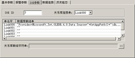 在紫金橋SOE點里面預定義了一個關系庫連接串,就是 Link000 ,該串是連接到工程下面的預設的 access 庫中。如果用戶,沒有自己定義關系庫,那么默認就是Link000 連接串。