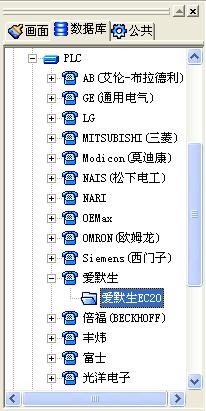 進入工程組態界面,在導航器—>數據庫—>設備驅動—>PLC—>愛默生下,能夠看到有愛默生EC20,如下圖所示: