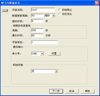 雙擊“愛默生EC20”彈出設備定義對話框,在這里指定設備名稱,數據更新周期,超時時間,設備地址等,如下圖所示