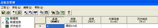 雙擊“點組態”彈出數據庫點組態管理窗口,