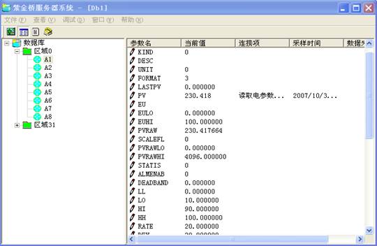 如果您在驅動程序中看到采集運行正常那么請您單擊“數據庫”,顯示實時數據庫的運行界面。