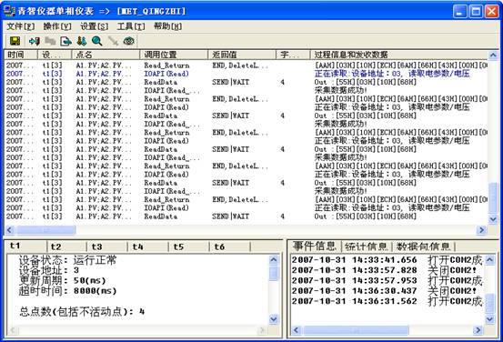 單擊“青智儀器單相儀表”,可以看到驅動程序的運行情況。如果您采集的數據出現問題可以根據此處提示信息進行驅動的調試及相應修改。