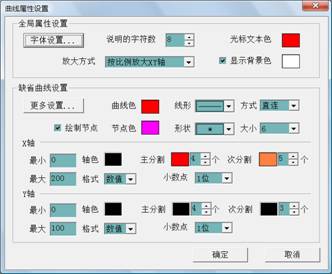 通過這些設(shè)置可以更改曲線的外觀、分隔數(shù)、線型、階梯連接方式、甚至還可以給曲線設(shè)置涂色,把曲線仿真成直方圖的形狀。具體的設(shè)置方法請(qǐng)參考紫金橋的自由曲線使用幫助。