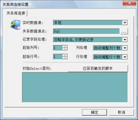 在關(guān)系庫連接對(duì)話框中的關(guān)系數(shù)據(jù)源點(diǎn)處選擇剛剛創(chuàng)建的關(guān)系數(shù)據(jù)源點(diǎn),并點(diǎn)擊“應(yīng)答后觸發(fā)的腳本”按鈕,輸入如下的腳本
