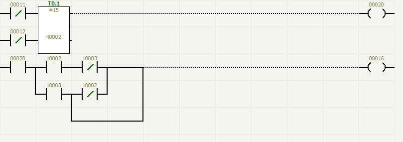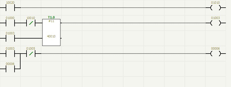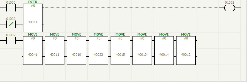 罐區(qū)儲(chǔ)罐的控制閥門因?yàn)楦舯脑虿捎玫氖菤鈩?dòng)閥門,是通過電磁閥對其進(jìn)行控制的。所以在罐區(qū)監(jiān)控系統(tǒng)中對罐區(qū)儲(chǔ)罐閥門的監(jiān)控采用了動(dòng)作反應(yīng)檢測和“看門狗”檢測相結(jié)合的方法,在氣動(dòng)閥開啟或關(guān)閉時(shí),都同時(shí)檢測氣動(dòng)閥的兩點(diǎn)回訊反饋(氣動(dòng)閥的回訊反饋原理請參閱有關(guān)說明書,不在這里敘述),通過毅天PLC編程,使氣動(dòng)閥的兩點(diǎn)回訊形成一定的邏輯關(guān)系,使氣動(dòng)閥的控制執(zhí)行和監(jiān)控更加可靠,達(dá)到零失誤。圖(6)是采用這種邏輯方式監(jiān)控一個(gè)氣動(dòng)閥的梯形圖。其中00001為電磁閥線圈,10002、10003為氣動(dòng)閥回訊反饋動(dòng)作,00008、00016為回訊報(bào)警。