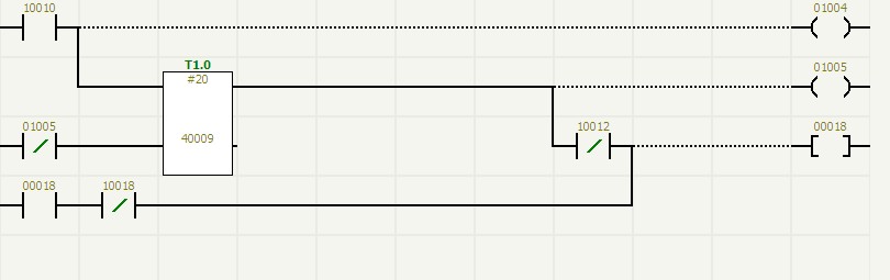 用毅天毅天PLC進(jìn)行數(shù)據(jù)采集一般有兩種方法: 一是定時(shí)采集,就是按照采樣時(shí)間,分別采集被控對象的數(shù)據(jù),并存入數(shù)據(jù)區(qū)。二是變化采集,即跟蹤被采集量,視其變化情況,若變化值超過使用它的精度,則采集,并同時(shí)記下采集時(shí)間。如果被采集的量變化不大,用變化采集可節(jié)省數(shù)據(jù)區(qū)。 在儲(chǔ)運(yùn)罐區(qū)系統(tǒng)中,對于現(xiàn)場模擬量信號的采集采用的是定時(shí)采集,每500ms為一個(gè)采集周期,如圖(2)為其中一路模擬量信號的定時(shí)采集的梯形圖。這里的T0.1為定時(shí)器,每500ms把30001通道(要采集數(shù)據(jù)的通道)的內(nèi)容存于以40020為指針的數(shù)據(jù)區(qū)中,存后指針加1,指針加1后再判斷指針是否超出數(shù)據(jù)范圍,若超,則把00000再賦給指針,既令其再從存儲(chǔ)區(qū)開始處存數(shù)。  對于現(xiàn)場儀表輸出的脈沖量,毅天毅天PLC當(dāng)成高速計(jì)數(shù)輸入,用高速計(jì)數(shù)單元采集,利用毅天毅天PLC定時(shí)中斷功能計(jì)算出采集信號的頻率。對于現(xiàn)場通過通信傳遞的數(shù)字儀表信號(如液位計(jì)或質(zhì)量流量計(jì)的數(shù)字信號),為了保證系統(tǒng)采集數(shù)據(jù)與現(xiàn)場測量儀表之間沒有精度轉(zhuǎn)換誤差,信號可由通訊口連接到毅天PLC的自由通訊口,這樣數(shù)字信號就與其它常規(guī)的I/O信號(DI、DO、AI、AO、)一起,由毅天PLC統(tǒng)一采集和控制了,日后構(gòu)成計(jì)算機(jī)冗余系統(tǒng)就比較容易了。再就是在采集數(shù)據(jù)中避免干擾的問題,對于采集的脈沖量,一般采取定時(shí)中斷的辦法執(zhí)行采集子程序,主要是避免丟失脈沖。若采集的為模擬量,一般可通過程序進(jìn)行數(shù)字濾波,克服干擾。濾波的方法很多,可以求平均值,也可加權(quán)平均等等。下圖為其中一路模擬量信號采用求平均值法進(jìn)行濾波采集的梯形圖,程序中通過5個(gè)周期連續(xù)采集5次數(shù)據(jù),存于40021至40025單元中,然后對5個(gè)數(shù)據(jù)求和并作平均,并以其值作為采集數(shù)即為濾波后的值,存于40060單元(余數(shù)在40062單元)    對罐區(qū)現(xiàn)場執(zhí)行機(jī)構(gòu)進(jìn)行可靠的控制執(zhí)行和過程監(jiān)控,特別是罐區(qū)每個(gè)儲(chǔ)罐的收油、付油、循環(huán)、注水等重要閥門的控制執(zhí)行和監(jiān)控是罐區(qū)監(jiān)控系統(tǒng)中最基本、也是最重要的工作內(nèi)容。 采用毅天PLC對現(xiàn)場執(zhí)行元件進(jìn)行監(jiān)控有兩種方法:一是用“看門狗”(英文稱Watching dog);二是用動(dòng)作反應(yīng)檢測,這兩種方法本質(zhì)上是相同的,只是,一個(gè)是看在給定的時(shí)間內(nèi)動(dòng)作完成了沒有;而另一個(gè)不太考慮延時(shí),只看動(dòng)作執(zhí)行了沒有。兩者的邏輯關(guān)系并無兩樣,只是一個(gè)用步的正常時(shí)間監(jiān)控,不必讀回訊信號,不增加可編程序控制器的I/O點(diǎn),比較容易實(shí)現(xiàn),下圖為這種監(jiān)控的梯形圖。 而另一個(gè)則要有反饋的回訊信號,要增加I/O點(diǎn),但可進(jìn)行實(shí)時(shí)監(jiān)控,下圖為這種監(jiān)控的梯形圖。