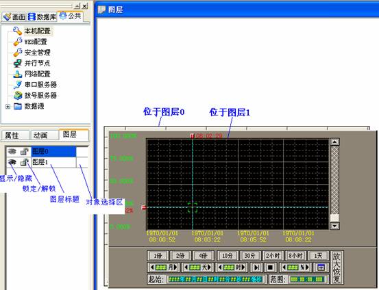 圖層操作:圖層可以被鎖定、隱藏、置前、置后。圖層在運行時可以動態地顯示或隱藏。