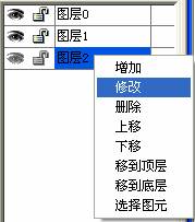 選擇右鍵菜單中“上移”、“下移”、“移到頂層”、“移到底層”項可以改變圖層的次序。