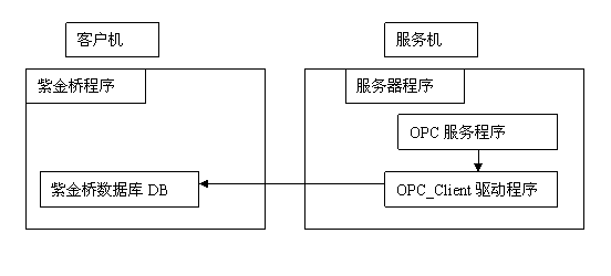 在新的方式下,紫金橋的OPC_Client驅動程序被運行在服務機上,數據首先被驅動程序在本機采集完成,然后通過網絡傳輸到客戶機的紫金橋數據庫中。