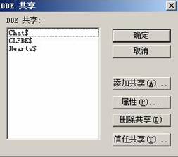 在“DDE共享”對(duì)話框中選中新添加的DDE共享,點(diǎn)擊“信任共享”按鈕,將其添加到受信任的共享中。如下圖: