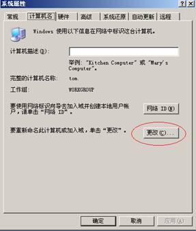 (2)選擇計(jì)算機(jī)名,點(diǎn)擊“更改”,如下圖