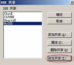 點(diǎn)擊“添加共享”,彈出“DDE共享屬性”對(duì)話框。如下圖: