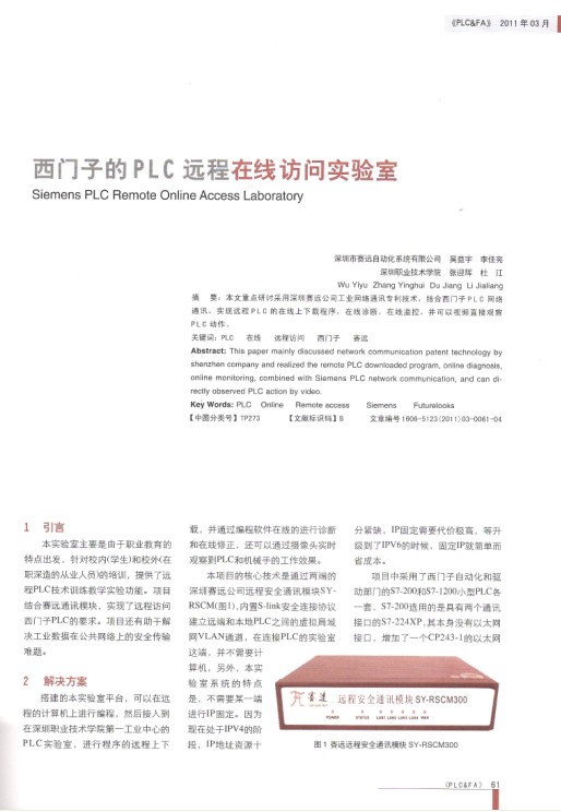 西門子的PLC遠程在線訪問實驗室,采用賽遠領先的工業通訊技術,聯合深圳職業技術學院,共同組建了遠程在線PLC實驗室,通過實驗室,學生可以在任何能夠上網的場合進行PLC的實訓訓練,系統運行穩定、安全,技術領先,是響應政府節能環保之倡導,為提供便捷的學習通道而搭建。