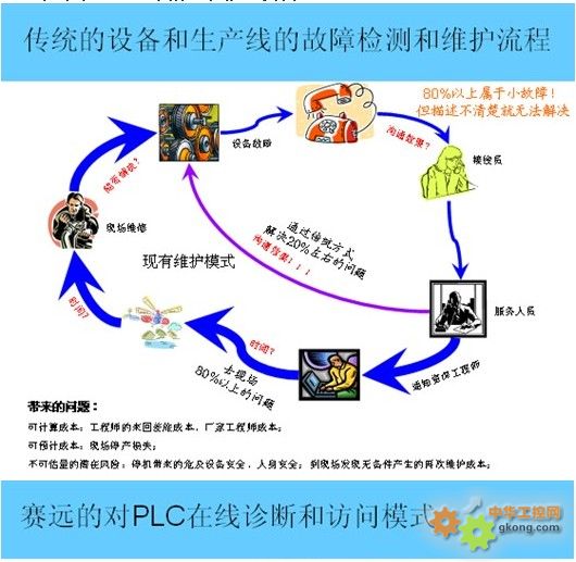 如內(nèi)置 S7-300 PLC 的醫(yī)療設(shè)備,從深圳銷售到沈陽(yáng),在沈陽(yáng)現(xiàn)場(chǎng)發(fā)生了一些故障之后,需要及時(shí)進(jìn)行維護(hù),傳統(tǒng)方式是讓懂設(shè)備和程序的專業(yè)工程師馬上從深圳出差到沈陽(yáng)現(xiàn)場(chǎng),進(jìn)行現(xiàn)場(chǎng)維護(hù),這樣一趟,差旅費(fèi)也很高,還不包括人工費(fèi),醫(yī)院等待設(shè)備恢復(fù)工作可能帶來(lái)的損失,以及設(shè)備故障未能及時(shí)發(fā)現(xiàn)和維護(hù)帶來(lái)的隱患。