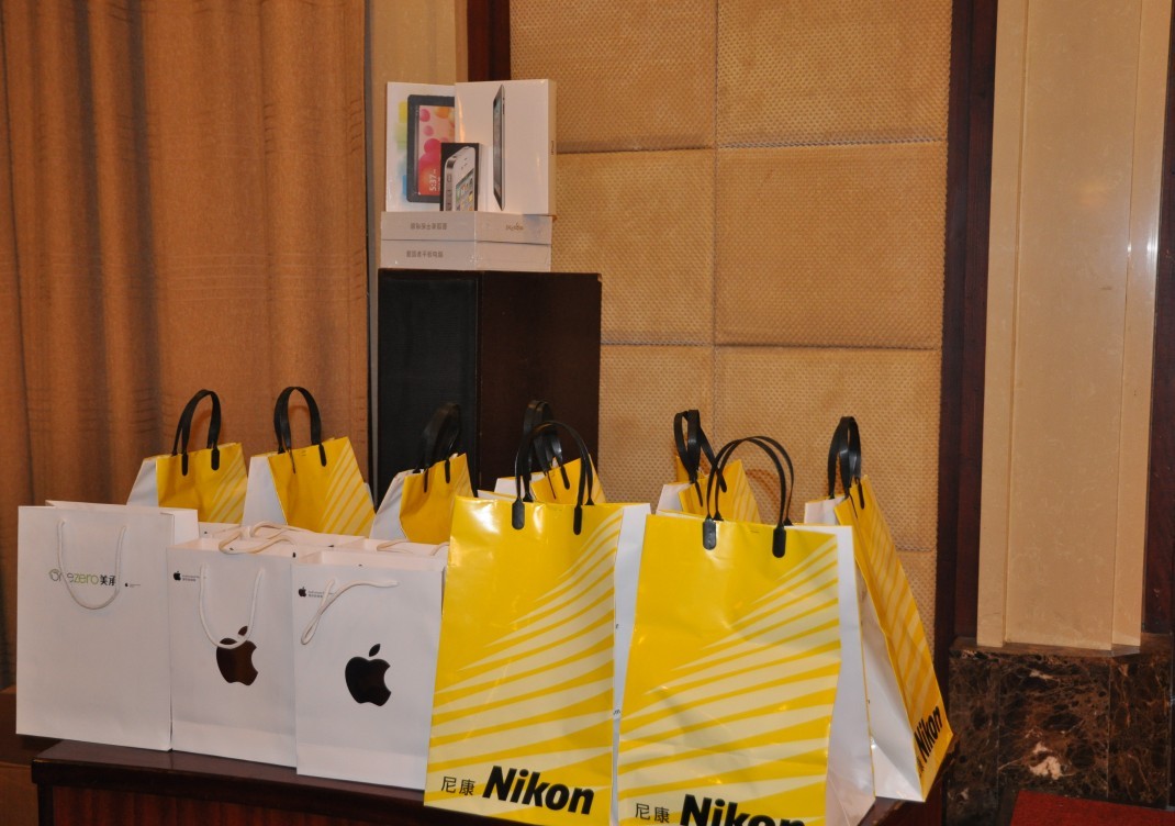 會議第三進程,抽獎環節。公司同樣設立了豐厚且豐盛的獎品。Ipone4、品牌電瓶車、平板電腦、高級絨毯均在獎品之列。抽到大獎的員工臉上笑開了花,沒抽到大獎的員工也不用氣餒,因為我們知道,明年的今天,在全體家人共同努力下,朝輝的獎品將會更多更豐盛。