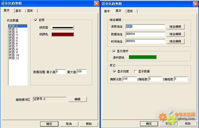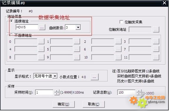 百分比趨勢圖的地址必須要先在【工程設置】中的【趨勢圖記錄區(qū)】中設置-如下圖。