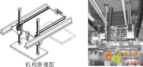 機器人定位系統(tǒng)是整臺設備的核心,為德國bahr公司產(chǎn)品,因運動速度快,而重復精度并不高, X,Y,Z三坐標均選擇為同步齒形帶傳動,單坐標重復定位精度為0.1mm,最快直線運動速度:1000mm/s。其中X坐標軸為兩根長度為3000mm,跨度為2200mm的定位系統(tǒng)ELZ100,由同步傳輸器保證兩根定位系統(tǒng)運動的同步,由一臺3000W伺服電機驅(qū)動。出于驅(qū)動扭矩及慣量的匹配,需要配一臺行星減速機。