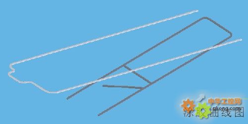 涂膠曲線為空間三維曲線。共有兩條涂膠曲線,空間夾角為16度