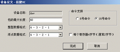 包的最大長(zhǎng)度:在分包時(shí),決定一次最多讀取的數(shù)據(jù)量。 數(shù)據(jù)存儲(chǔ)格式:有4種格式,即:“低-次低 - 高-次高”、“次低-低 - 次高-高”、“高-次高 - 低-次低”、“次高-高 - 次低-低”,16位與32默認(rèn)都是第一種。 命令支持:當(dāng)選中6號(hào)命令與16號(hào)命令,則采用前者。. 非標(biāo)準(zhǔn)協(xié)議支持:支持每個(gè)寄存器4個(gè)字節(jié)數(shù)據(jù)長(zhǎng)度的設(shè)備。
