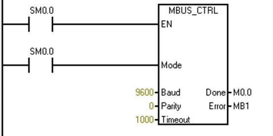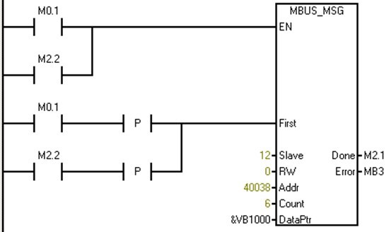 CPU 222 PLC通過EM277 DP模塊接入到PROFIBUS-DP網(wǎng)絡(luò),作為PROFIBUS-DP網(wǎng)絡(luò)的從站,同時(shí)CPU222 PLC又作為一個(gè)主站與電力監(jiān)控儀表組成一個(gè)子網(wǎng),電力監(jiān)控儀表作為子網(wǎng)的從站,主從站之間采用自由口通信方式。 同樣,對(duì)于PB-B-MODBUS總線橋來說,作為PROFIBUS-DP網(wǎng)絡(luò)從站的同時(shí),又作為MODBUS子網(wǎng)的主站與電力監(jiān)控儀表組成MODBUS網(wǎng)絡(luò)。ANYBUS網(wǎng)關(guān)工作原理與PB-B-MODBUS總線橋的工作原理相似,它在該系統(tǒng)中同樣既做PROFIBUS-DP網(wǎng)絡(luò)從站,又作為MODBUS子網(wǎng)的主站與我公司電力監(jiān)控儀表組成MODBUS網(wǎng)絡(luò)。 1.1 PLC自由口通信子網(wǎng) PLC作為PROFIBUS網(wǎng)絡(luò)的一個(gè)從站,其自身功能非常強(qiáng)大,不但可以通過主站對(duì)連接到從站PLC I/O點(diǎn)上的各種I/O量進(jìn)行采集和控制,而且PLC本身就可以構(gòu)成一個(gè)子網(wǎng),比如MPI網(wǎng)絡(luò),自由口通信網(wǎng)絡(luò)等。而且可以擴(kuò)展以太網(wǎng)接口模塊將整個(gè)網(wǎng)絡(luò)接入以太網(wǎng),擴(kuò)展AS-I接口模塊,將系統(tǒng)接入ASI-I網(wǎng)絡(luò)等。對(duì)于工業(yè)控制場(chǎng)合,該網(wǎng)絡(luò)應(yīng)用范圍是非常廣泛的。 PLC作為自由口通信網(wǎng)絡(luò)的主站,通過對(duì)PLC進(jìn)行自由口通信編程,實(shí)現(xiàn)PLC與電力監(jiān)控儀表間的MODBUS通信。利用西門子公司提供的庫函數(shù)MBUS_CTRL和MBUS_MSG可以簡(jiǎn)單方便地實(shí)現(xiàn)MODBUS通信,如圖2、圖3所示。